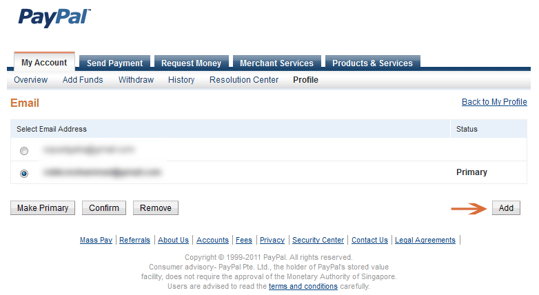 Buat sobat yang ingin menambah email paypal dalam satu akun paypal,berikut caranya :