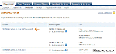 Untuk penarikan dana kurang dari 1.5 juta biasanya akan dikenakan biaya sekitar Rp.16.000,- sedangkan untuk penarikan lebih dari 1.5 juta biasanya tidak akan kena biaya. Berikut langkah-langkah untuk menarik uang dari paypal ke rekening bank kita.